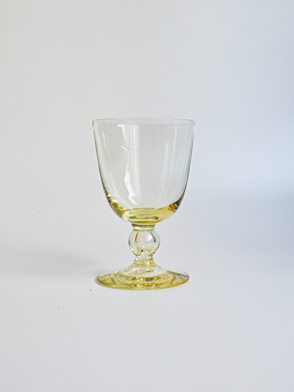 핸드 블로운 기법으로 만들어진 것으로 추정되며, 스템에 작은 버블이 장식되어 아트적입니다.
