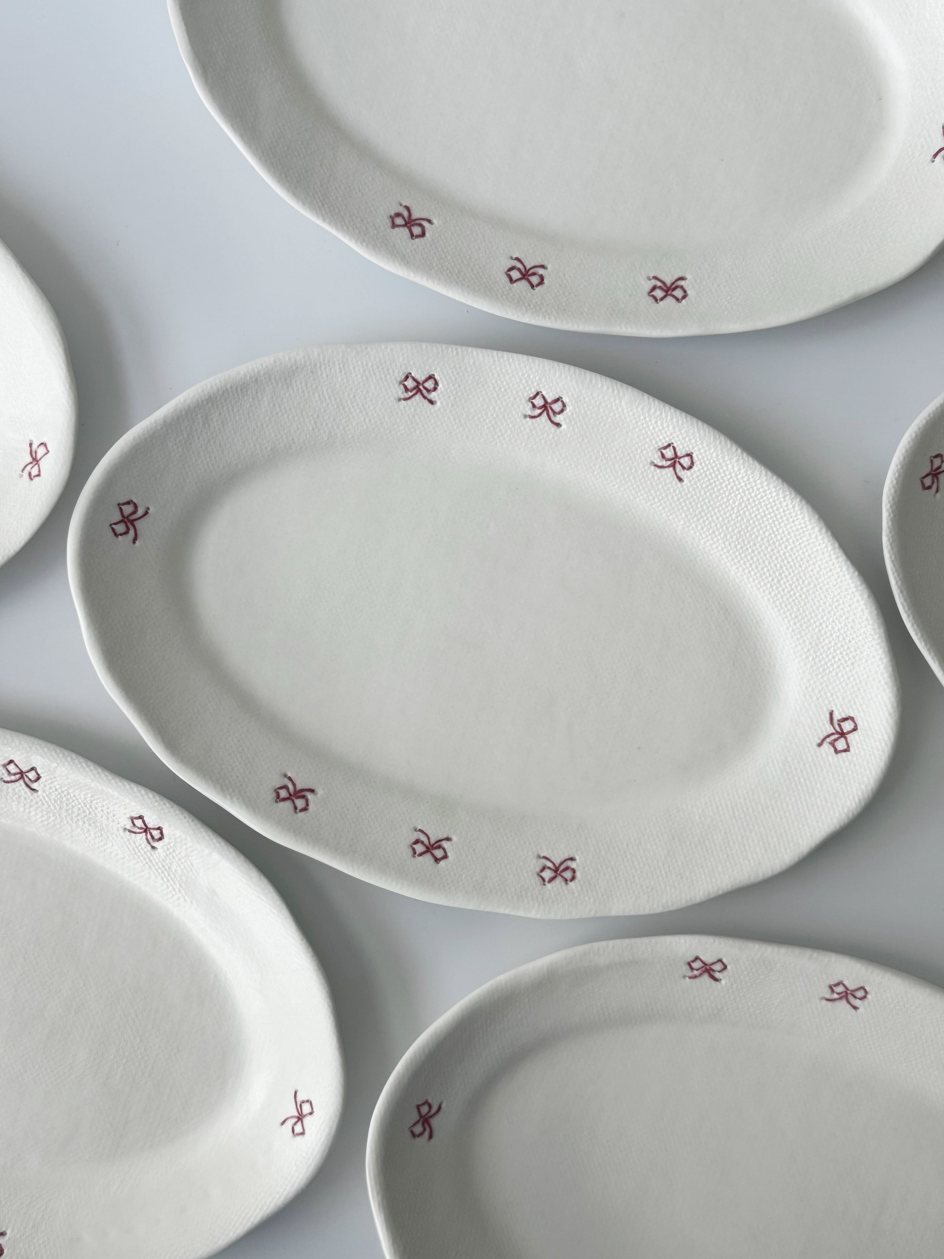 리본스티치플레이트오발L-레드