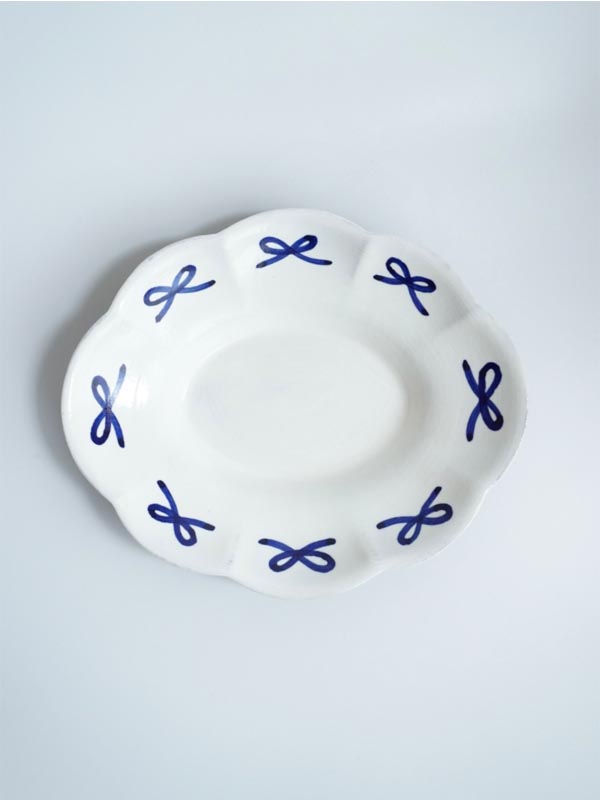 소박하여 따뜻한 느낌을 내는 미색의 화장토와 선명한 청화의 색이 어우러진 오벌 그릇입니다.