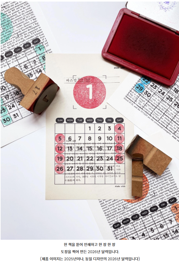 재활용 소재를 사용해보기로 했고 집에서 굴러다니던 헌책을 달력으로 만들었던 것이 좋은 반응을 얻으면서,
