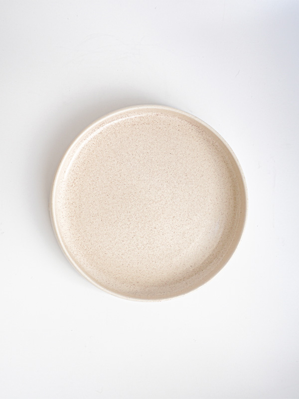 부드러운 은은한 컬러의 아이보리 컬러에 작은 점들이 더해진 플랫한 원형 접시입니다.